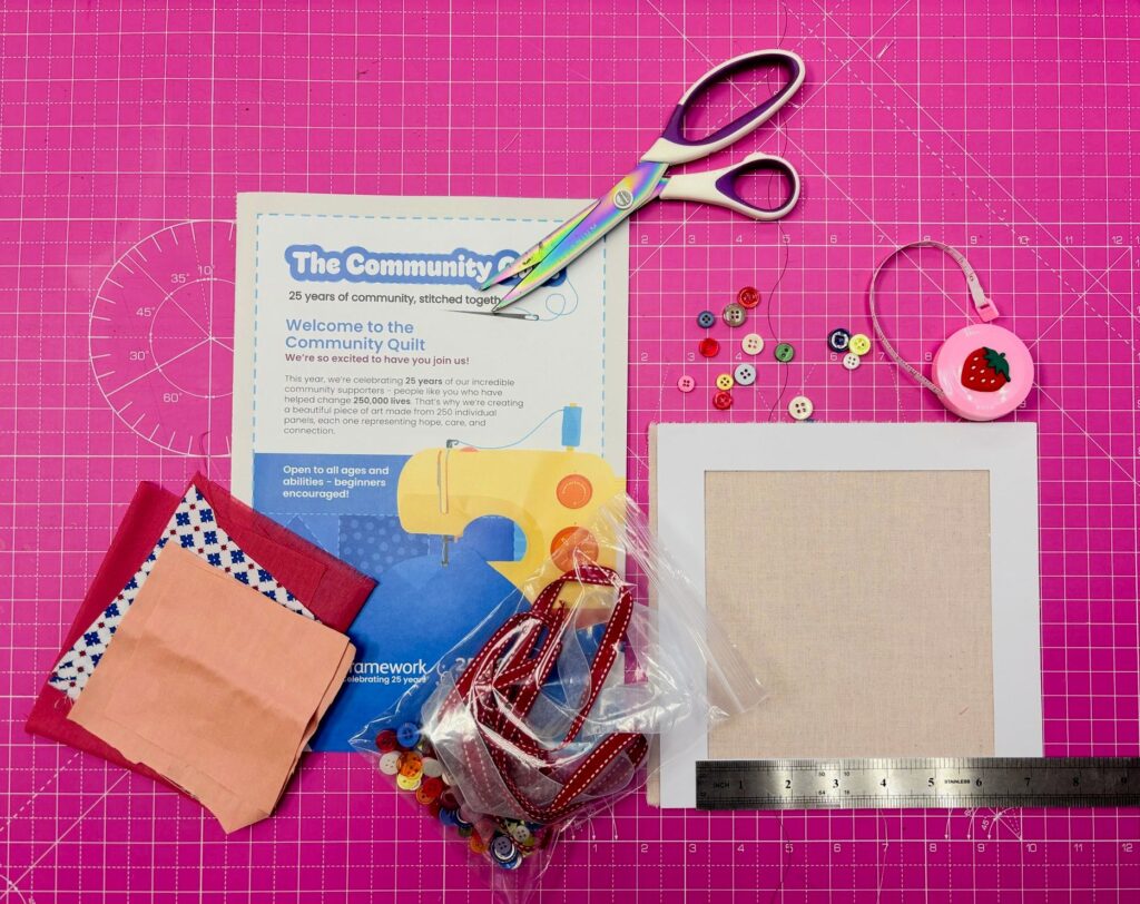 Alongside the exhibition, we are inviting everyone to take part in the Framework Community Quilt, a collaborative artwork celebrating 25 years of community support.